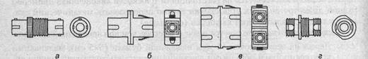 Мал. 3.8. Оптичні розетки: а — ST, би — SC, в — SC-дуплекс, г — FC