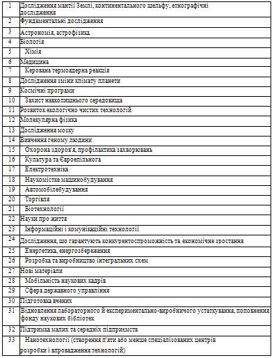 Серед пріоритетних напрямів фінансування науки України виділяють такі, що наведені в табл.3.