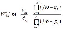 Важным общим показателем свойств звена является принадлежность нулей передаточной функции к левой полуплоскости р. Рассматривая передаточную функцию, записанную в форме (1.15), можно комплексный коэффициент усиления выразить как