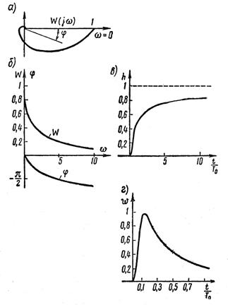 На рисунке 1.7.27, а, б построены амплитудно-фазовая, амплитудно-частотная и фазочастотная характеристики. Комплексный коэффициент усиления при изменении аргумента на