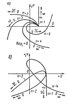 — это уже половина окружности, а для произвольного значения n дополнение годографа в бесконечности представляет собой дугу, состоящую из n четвертей окружности бесконечно большого радиуса, начинающуюся при частоте