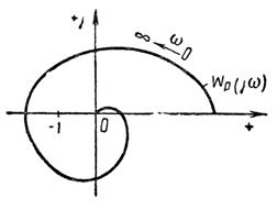 значение Wр по (2.2.20) обращается в ¥, поэтому для сохранения формулировки критерия, справедливой для устойчивых в разомкнутом состоянии систем, при построении годографа либо, обходя мнимую ось от -¥ до +¥, огибают точку (0, 0) справа по полуокружности бесконечно малого радиуса