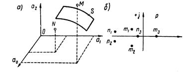 Каждому значению коэффициентов a0, a1 и a2 в трёхмерном пространстве коэффициентов (рисунок 2.3.1) соответствует точка. Этому значению коэффициентов уравнения соответствует определенное расположение корней уравнения в плоскости корней (рисунок 2.3.1,б). Точке М соответствуют корни m1, m2 и m3,точке N — корни n1, n2 и n3. При некоторых значениях коэффициентов один или пара корней окажутся на мнимой оси, т.е. корни будут иметь вид 0 или