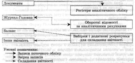 Форма бухгалтерського обліку відображає відповідну технологію облікового процесу. Кожна форма обліку завжди передбачає відповідне групування господарських операцій та дотримання встановленої послідовності їх відображення, порядок записів у регістрах синтетичного й аналітичного обліку, складання та представлення облікових даних у вигляді звітності для потреб користувачів.