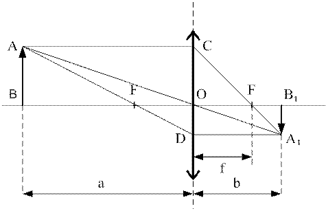 Это выражение называется формулой тонкой собирающей линзы. У рассеивающей линзы фокусное расстояние отрицательное