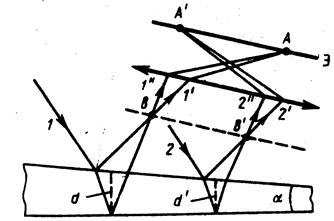 между боговыми гранями мал) падает плоская волна, направление распространения которой совпадает с параллельными лучами 1 и 2 (рис.3).