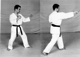 Он выполняется, как правило, из фронтальной стойки. Руки подняты до уровня головы. Бьющий кулак начинает движение от подбородка. Другая рука выдвинута чуть вперед и прикрывает голову, грудь, живот. В выполнении удара участвуют все части тела. Движение начинается с толчка носком стопы одноименной с бьющей рукой ноги. Затем подключается бедро этой ноги, а потом весь корпус, который, поворачиваясь, подается вперед и как бы «выстреливает» бьющую руку (рис. 6). Все другие прямые удары, описанные выше, могут выполняться по аналогичной схеме.