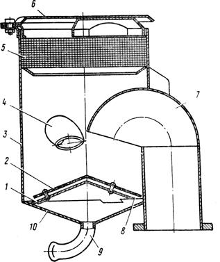 Сливной патрубок 8 крепится к корпусу фильтра шпильками. Стык между ними уплотнен паронитовой прокладкой.
