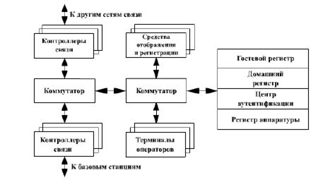 Важными элементами системы являются БД - домашний регистр, гостевой регистр, центр аутентификации, регистр аппаратуры. Домашний регистр (местоположения - Home Location Register, HLR) содержит сведения обо всех абонентах, зарегистрированных в данной системе, и о видах услуг, которые могут быть им оказаны. В нем фиксируется местоположение абонента для организации его вызова и регистрируются фактически оказанные услуги. Гостевой регистр (местоположения - Visitor Location Register, VLR) содержит сведения об абонентах - гостях (роумерах), т.е. об абонентах, зарегистрированных в другой системе. Центр аутентификации (Authentication Center) обеспечивает процедуры аутентификации абонентов и шифрование сообщений. Регистр аппаратуры (идентификации - Equipment Identity Register), если он существует, содержит сведения об эксплуатируемых ПС на предмет их исправности и санкционированного использования. В частности, в нем могут отмечаться украденные абонентские аппараты, а так же аппараты, имеющие технические дефекты, например являющиеся источником помех недопустимо высокого уровня.