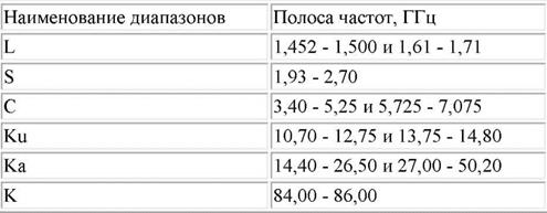Таб.16 Полосы частот, выделенные для спутниковых систем