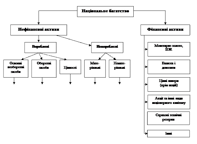 В системі національного рахівництва для характеристики національного багатства застосовується термін „економічні активи”. Під активами розуміється все те, що використовується в господарській діяльності і може приносити, забезпечувати їх власникам економічні вигоди. Економічні активи поділяються на фінансові та не фінансові. В складі нефінансових активів виділяють вироблені (створені) та невироблені нефінансові активи.