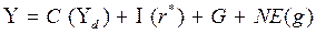 - споживання прямо залежить від використовуваного доходу, а інвестиції перебувають в оберненій залежності від процентної ставки, яка, за припущенням, дорівнює світовій;