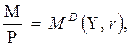 Дане рівнянняописує умови рівноваги на грошовому ринку за допомогою кривої LMз урахуванням того, що внутрішня процентна ставка дорівнює світовій.Ліва частина цього рівняння – характеризує пропозицію грошей, а права – попит на гроші.