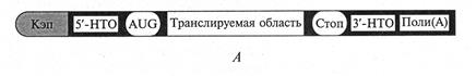 Рис. 10. Структура мРНК (А) и кэп-структура на 5/-конце мРНК эукариот (Б)