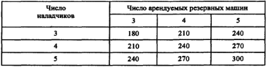 Далее определим ежедневные затраты на оплату труда наладчиков и аренду резервных машин. Для этого создадим еще одну матрицу (табл. 8.7) элементов Cij с той же размерностью, какая существует в табл. 8.6. Элементы этой матрица определяются с помощью табл. 8.5 из соотношения