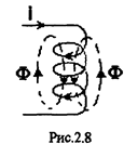 Реальным устройством, обладающим такими свойствами является индуктивная катушка (рис.2.8). Пусть в катушке протекает ток i. Тогда будет создано магнитное поле, которое характеризуется магнитным потоком Ф. Направления тока i и магнитного потока Ф связаны правилом буравчика (винта), иначе правилом правой руки