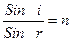 Промінь, що падає на межу поділу двох оптичних середовищ і, промінь заломлений ν та нормаль до межі поділу лежать в одній площині. Кут падіння і кут заломлення пов’язані співвідношенням