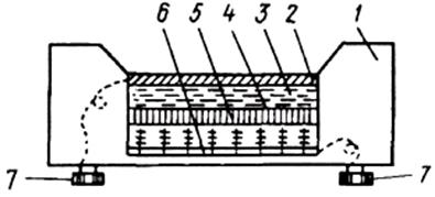 нього електрода беруть метал, на межі з яким запірний шар не утворюється. Можна матеріали для підкладки 6і верхнього електрода 2вибрати такі, що запірний шар 4буде утворюватися біля верхнього металевого електрода. Верхній електрод роблять напівпрозорим (способом випаровування або катодного розпилення), щоб крізь нього в напівпровідник проходило світло. Зовнішню поверхню елемента покривають лаком з метою захисту його від дії повітря і вологи. Весь фотоелемент кріпиться в пластмасовому корпусі 1; 7 – вивідні клеми.