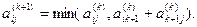 2. Пусть i – номер последней вершины, которой присвоена окончательная метка Ci. Каждой вершине j, имеющей временную метку Dj, присваивается новая временная метка по правилу Dj:=min(Ci+aij , Dj). Если значение Dj меняется, то вместе с ним сохраняется номер предыдущей вершины i.