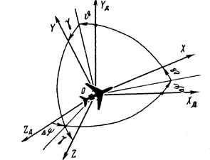 скорости движения самолета относительно воздушной среды, называемой истинной воздушной скоростью. Направление оси OXа скоростной системы координат OXаYаZа совпадает с направлением вектора
