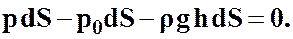. Силы давления по боковой поверхности цилиндра в уравнение не входят, т.к. они перпендикулярны к этой поверхности и их проекции на вертикальную ось равны нулю. Сократив выражение на dS, и перегруппировав члены, найдем