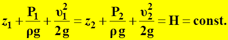 и прочитать так: сумма трех членов уравнения Бернулли для любого сечения потока идеальной жидкости есть величина постоянная.