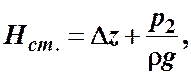 Назовем сумму первых двух слагаемых статическим напором, который представим как некоторую эквивалентную геометрическую высоту