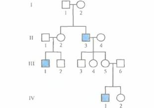 | Рис. 20.1. Аутосомно-доминантный тип наследования. Квадратиками изображены мужчины, кружками — женщины; закрашенные символы — больные члены семьи, незакрашенные — здоровые. Горизонтальная линия, соединяющая квадратик и кружок, означает, что данные мужчина и женщина являются супругами. Вертикальные линии ведут к их потомкам, родившимся в том порядке, как они расположены на рисунке, слева направо. Римскими цифрами (I, II и III) обозначены поколения, арабскими (1, 2 и 3) — члены семьи в каждом поколении. Для точного обозначения конкретного члена семьи используется двузначный код (например, II-3). Характерными признаками аутосомно-доминантного типа наследования являются: 1) симптомы заболевания проявляются в последующих поколениях в случае полной пенетрантности (т. е. если каждый генотип проявляется фенотипически); 2) лица мужского и женского пола поражаются с одинаковой частотой. |