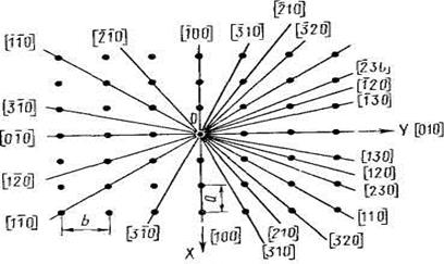 2) определить координаты любой точки этого направления, приняв за единицу измерения период решётки;