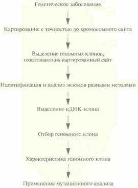 Как правило, ген конкретного заболевания человека нельзя клонировать, руководствуясь каким-то заранее составленным набором экспериментальных протоколов. Выбор имеющихся в распоряжении исследователя методов и средств зависит от конкретных условий. Начало поиска гена заболевания определяется имеющейся информацией о продукте данного гена. В одних случаях генный продукт бывает хорошо известен, в других можно лишь догадываться, что он собой представляет. Наконец, для многих наследственных заболеваний природа генного продукта вообще неизвестна. Для каждого из этих случаев разработана своя стратегия. В целом для поиска гена заболевания существует четыре подхода: функциональное, кандидатное, позиционное и позиционно-кандидатное картирование. Независимо от применяемого подхода утверждать, что данный ген ассоциирован с интересующим исследователя заболеванием, можно лишь после того, как у больных обнаружены нуклеотидные изменения в гене, не встречающиеся в том же гене у здоровых индивидов.