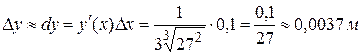 Пример 2. Вычислить приращение стороны куба, если его объем увеличится от 27 до 27,1 м3.