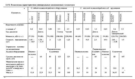 Техническая характеристика одноковшовых универсальных экскаваторов с гибкой и жёсткой подвеской рабочего оборудования приведена в таблице 2.10.