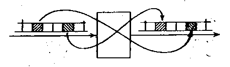 Существует множество структур коммутационных схем, которые позволяют выполнять операции, указанные на рис.6. Все эти структуры, по существу, требуют, по крайней мере, двух звеньев: звена пространственной коммутации и звена временной коммутации. Как будет показано в дальнейшем, коммутационные схемы большой емкости обычно содержат несколько звеньев обоих типов. Однако, прежде чем начать обсуждение двумерной (двух координатной) коммутации, рассмотрим характеристики и возможности одной лишь временной коммутации.