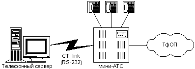 Рис. 1.28.Подключение мини-АТС к внешнему компьютеру через CTI link