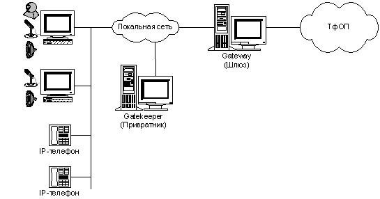 Соединением с ТфОП занимается еще одно сетевое устройство – шлюз (Gateway), которое, в сущности, играет роль «внешних линий». С его помощью абоненты могут совершать и принимать обычные телефонные звонки.