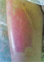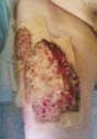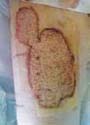Рис 1. Атравматическая повязка «Бранолинд Н®», пропитанная перуанским бальзамом при лечении обширной донорской раны бедра.