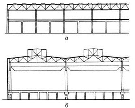 –по профилю покрытия – с фонарными надстройками или без них. Здания с