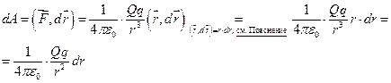 Пробный (положительный и очень маленький по размеру – это определение пробного заряда) заряд q медленно (квазистатически – заряд находится почти в покое) перемещаем по пути Г («гамма-большое») из 1 в 2 в электростатическом поле точечного статического заряда Q. Найдем элементарную работу сил электростатического поля этого заряда по перемещению заряда q: