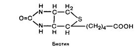 Биотин (витамин Н) был впервые выделен из яичного желтка в 1935 г. Молекула биотина (от греч. bios - жизнь) является циклическим производным мочевины, а боковая цепь представлена валериановой кислотой.
