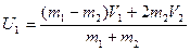 Новая общая скорость И может быть найдена по закону сохранения импульса:
