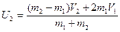 Заданы массы m1, m2 и скорости V1 и V2 направленные по их линии центров.