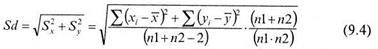 В случае не равночисленных выборок п1 ≠ п2, выражение (9.2) будет вычисляться следующим образом:
