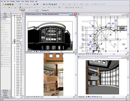 При работе над моделью здания в Autodesk Revit Architecture автоматически создаются точные планы этажей, фасады, разрезы и 3D-виды, вычисляются площади, а также формируются ведомости и спецификации в соответствии с заданными параметрами. Автоматически создаются трехмерные виды, а имеется возможность вносить изменения в модель здания даже на поздних стадиях с полной уверенностью в том, что все виды, спецификации и другие составные части рабочей документации останутся полностью скоординированными.
