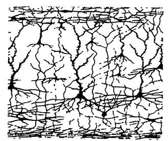 Головной мозг человека и высших животных состоит из серого и белого вещества. Серое вещество есть скопление дендритов, аксонов и нейронов. Белое вещество образовано волокнами, соединяющими различные области мозга друг с другом, с органами чувств, мускулами. Волокна покрыты специальной элиминированной оболочкой, играющей роль электрического изолятора. В мозге существуют структурно обособленны отделы, такие, как кора, гиппокамп, таламус, мозжечок, миндалина, и др. (рис.6.3). Каждый из отделов имеет сложное модульнуе строение. Особое место модульное строение. Особое место в мозге занимает церебральная кора, которая является его важнейшей частью. В настоящее время принято считать, что именно в коре происходит важнейшие процессы ассоциативной переработки информации.
