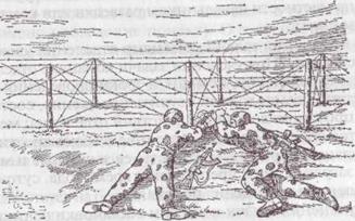 Отделение, назначенное для проведения поиска, из своего состава выделяет солдат для захвата пленного (группа нападения, рис. 15), солдат для проделывания проходов в заграждениях (группа разграждения проходов, рис. 16), как правило, из числа приданных саперов, солдат для обеспечения захвата (группа огневого обеспечения).