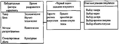 Пройдя через «черный ящик» сознания покупателя, всевозможные раздражители (первый блок) вызывают ряд доступных наблюдению покупательских реакций (третий блок). Наибольший интерес для психологов представляет "черный ящик" сознания покупателя. Он состоит из двух частей, одна из которых содержит характеристики покупателя, оказывающие влияние на восприятие раздражителей и реакции на них, вторая часть включает принятие покупательского решения.