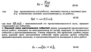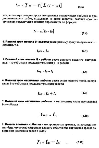 Расчет временных параметров сетевого графика производится в соответствии со следующими формулами.