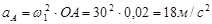 направлен параллельно кривошипу ОА от точки А к точке О.