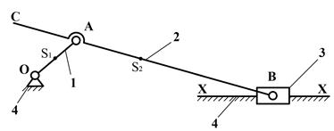 2.Размеры звеньев: ОА = 20мм, АВ = 76мм, АС = 26мм, AS2 = 25 мм.