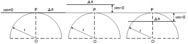 Возможны три случая относительного расположения делительной прямой и делительной окружности радиуса r.(рис.5.5).